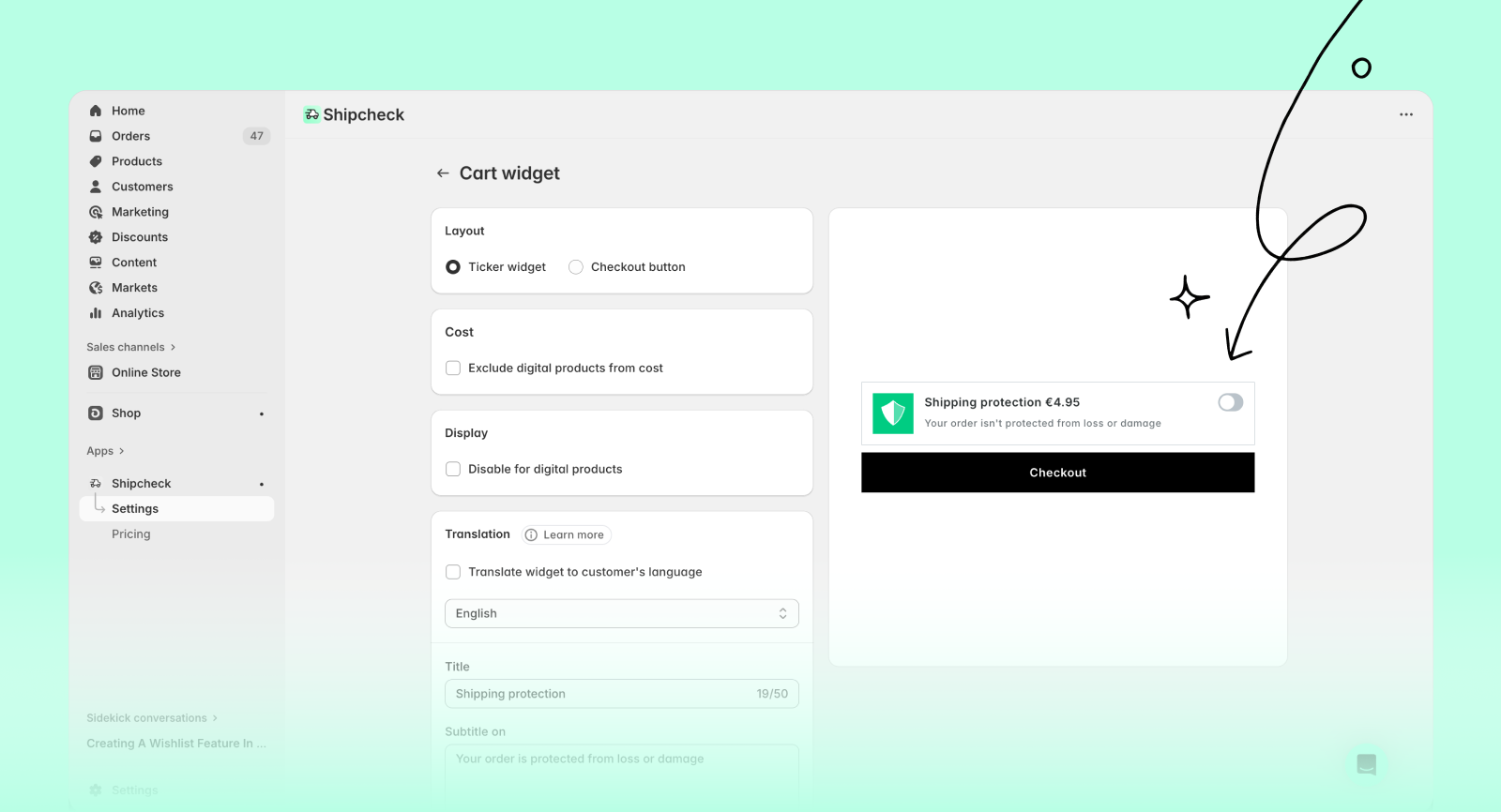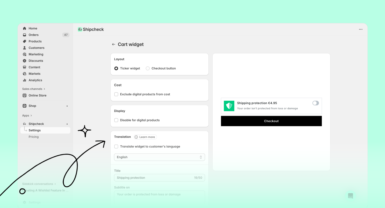 This guide covers all the customization options available for the cart widget—like layout, language translation, styling, and more.