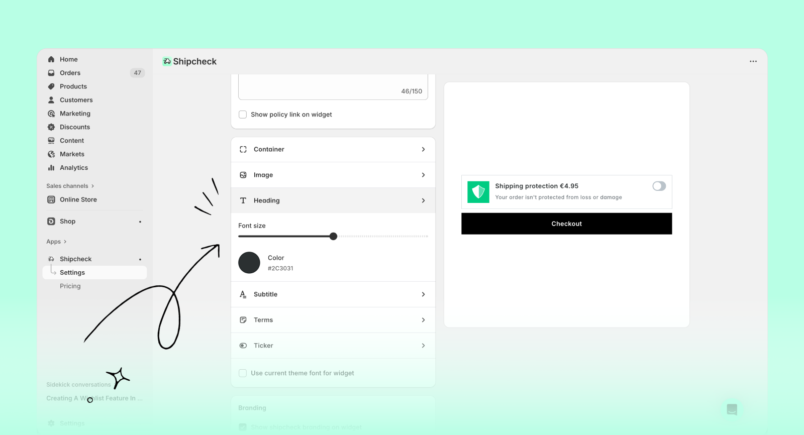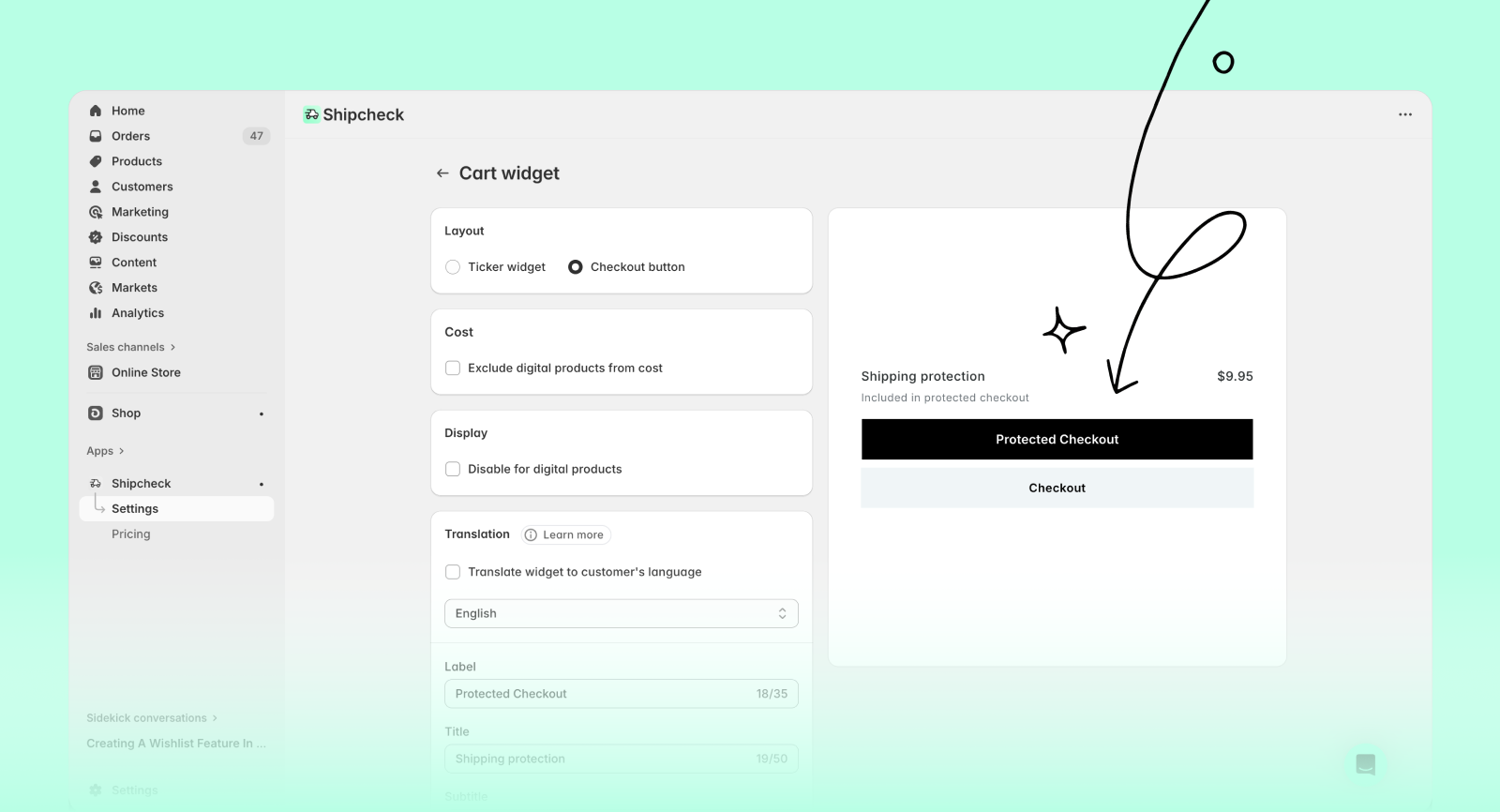 This layout adds a Shipcheck-powered Checkout button directly on your cart page. When customers click it, they check out with shipping protection included by default.